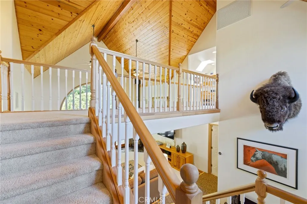 This is an incredible property! Its location between Mariposa and Oakhurst offers easy access to Yosemite National Park, making it a prime spot for short term rentals. The amenities like the custom in-ground pool with a waterfall and the outdoor kitchen/dining area make it perfect for entertaining guests. The home itself seems to have been designed with both luxury and functionality in mind, with features like the Master Suite on the Main Floor, the chef's kitchen with a walk-in pantry and wine fridge, and the spacious living room with dramatic ceilings. The additional bedrooms, office space, and bonus room above the garage offer plenty of room for guests and activities. And with amenities like the Generac Generator, water storage tank, and outdoor tub/shower, it's clear that attention has been paid to both comfort and convenience. Short term Rental opportunity with potential for an additional Future 1440+/- sqft barn dominium to build out. This home is 3 beds/3 baths w/2,523+/- sf with the Master Suite on the Main Floor, wrap-around decks knotty pine ceilings that overlook your custom in-ground pool w/waterfall on 5.25+/- Acres. The entry has pebble tech flooring to the spacious living room w/dramatic 30'+/- ceilings with access to your outdoor kitchen/dining area & pool. There is plenty of room for family & friends in your indoor formal dining area. The chef's kitchen has everything you need with a walk-in pantry & wine fridge w/serving area. The 2nd floor overlooks the main floor with 2 additional bedrooms, an office/desk area, and plenty of storage for winter crafting &