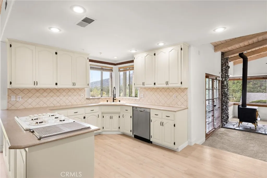 Welcome to this beautifully updated mountain home featuring 3 spacious bedrooms, a versatile den, and 3 full bathroomsperfect for full-time living, weekend getaways, or a short-term rental opportunity. This home boasts a bright, open floor plan that seamlessly connects the living, dining, and kitchen areas, ideal for entertaining or cozy nights by the fire. Enjoy the brand-new flooring and fresh interior paint that give the home a modern, move-in-ready feel. Large windows throughout invite natural light and showcase the stunning views of the surrounding mountains and forest, creating a serene and inspiring atmosphere. Set on the scenic Highway 2 in charming Wrightwood, this property offers the perfect blend of mountain living and modern comfortall just minutes from skiing, hiking, dining, and more.