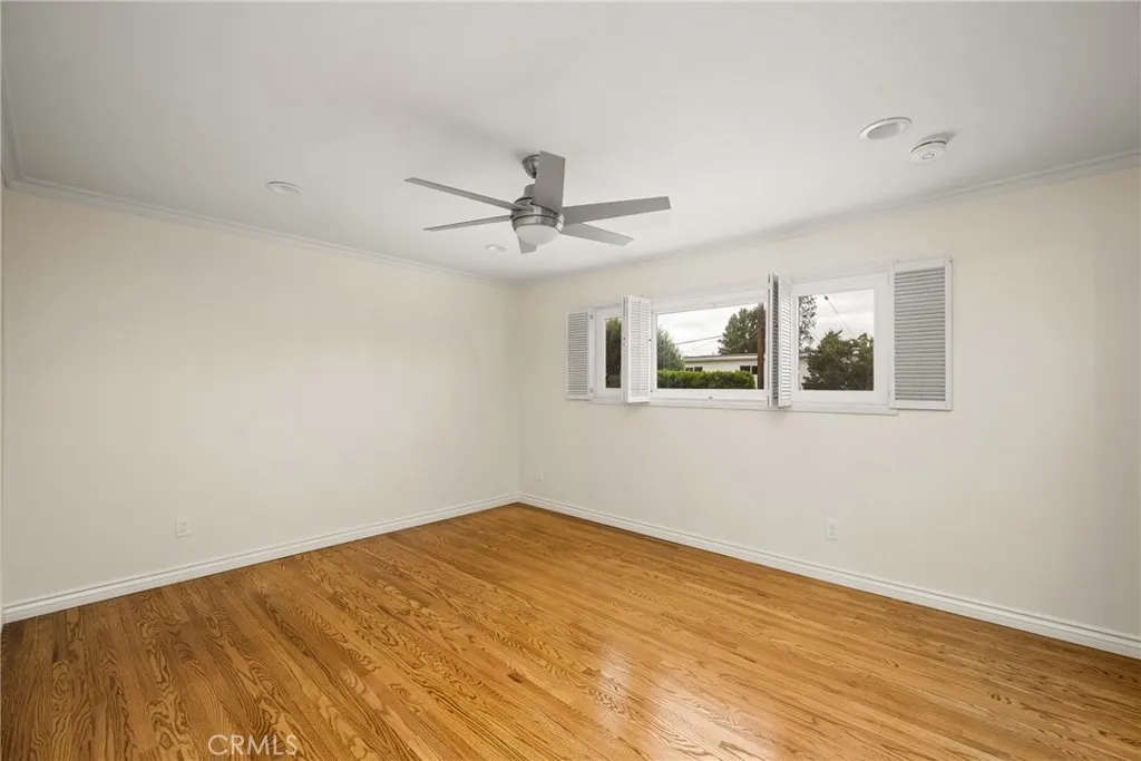 Welcome to this beautifully upgraded 4-bedroom, 3-bathroom home offering 2,121 sq ft of thoughtfully designed living space. Featuring a downstairs bedroom and full bath, this layout is ideal for guests or multigenerational living. At the heart of the home is the Designer Chef's Kitchen, equipped with premium appliances including a Dacor refrigerator, Dacor double oven with warming drawer, Wolf 6-burner cooktop, Bosch dishwasher, and Dacor convection microwave. Quartzite countertops, a vegetable prep sink, and custom pull-out shelving complete this culinary dream. All bathrooms have been tastefully updated with elegant KraftMaid birch wood cabinetry, adding warmth and sophistication throughout. The home features 3/4-inch Hickory wood floors, recessed lighting, and ceiling fans to keep you comfortable year-round. Step outside to entertain in style under the custom-built covered patio, perfect for alfresco dining. The expansive backyard is a private oasis with mature Hass avocado, orange, lime, and lime trees, plus a convenient slab sink for barbecuing. Two custom 8x16 sheds, fully insulated with drywall, windows, and 3-amp wiring, provide exceptional additional space. Additional highlights include RV parking with remote-controlled gate access, Noritz tankless water heater, Trane top of the line air conditioner. reverse osmosis water system, Vertex security system with multiple cameras, newer ductwork, and a 3-year-old composition shingle roof with a 50-year warranty. A rare find that seamlessly blends luxury finishes, thoughtful upgrades, and versatile outdoor spacethis home