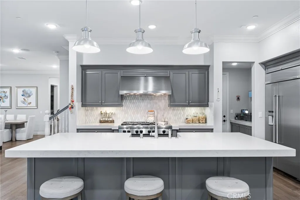 Experience elevated living in this exquisite 4-bedroom, 4.5-bathroom residence, masterfully upgraded with over $200,000 in refined enhancements. Homeowners are the original owners and had the builder, KB Homes, complete the conservatory upgrade during construction, adding additional square footage to expand the living space. 202 Geyser is the essence of modern luxury and comfort, blending thoughtful design with timeless sophistication. From the moment you enter, youll be captivated by model-quality finishes, including a desirable main-level guest en-suite and three additional upstairs bedrooms, each featuring its own private bath. The expansive great room exudes warmth with a designer fireplace and immersive 7.2 surround sound systemperfect for both relaxing and entertaining. The chefs kitchen is a true culinary masterpiece, showcasing upgraded soft-close cabinetry, a custom-built pantry with a charming barn door, and sleek finishes throughout. A striking powder room with custom wood detailing adds to the homes upscale character. Additional designer touches include custom draperies, bamboo window shades, plantation shutters, a built-in linen cabinet, and pre-wired ceiling speakers in the master suite, loft, kitchen, and dining areas. The finished garage is equally impressive, featuring epoxy flooring, custom built-in storage, and an EV charger. Step outside to your private Tuscan-inspired oasiscomplete with a pergola and remote-controlled heater, a built-in BBQ island with sink and water heater, a gas fire pit, tranquil water features, and lush landscaping with drip irrigat