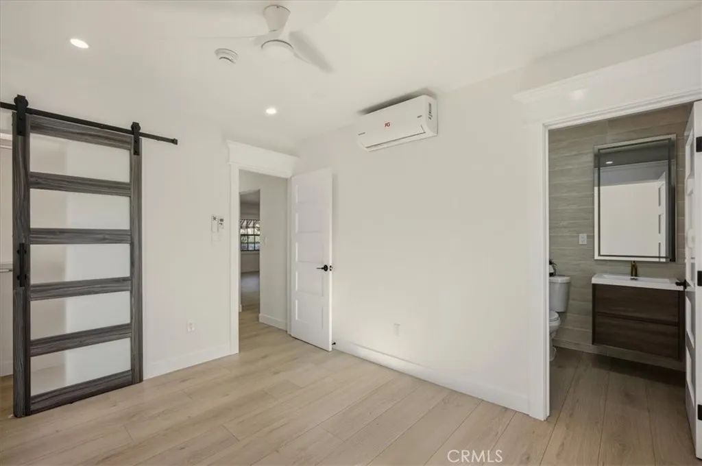 Welcome to this completely updated Spanish Revival bungalow showcasing classic Spanish character with modern upgrades throughout, and located in historic N. W. Ontario! The lush green front lawn, drought tolerant plants, terracotta tile covered entry and long driveway leading to the original detached one-car garage, create excellent curb appeal. As you enter, youre greeted by an open and inviting floor plan featuring a bright living room with an elegant fireplace and a stylish kitchen with new finishes, bar stool seating, and ample cabinetry. The individual laundry room off the kitchen provides extra storage and convenience. Throughout the home, youll notice detailed crown molding around the doorways and windows, adding timeless charm. The two spacious bedrooms are filled with natural light and feature barn-style closet doors. The hall bath has been beautifully upgraded, while the primary suite includes its own barn-style door closet and luxurious en suite bathroom. Enjoy a well-maintained backyard with plenty of room for outdoor seating and relaxation the perfect space to unwind or entertain. Conveniently located near shopping, dining, and major freeways, this Ontario gem blends style, comfort, and character in one delightful package. The new electrical, plumbing and roof (per seller) as well as a completely new interior, make this an incredible place to call home!!