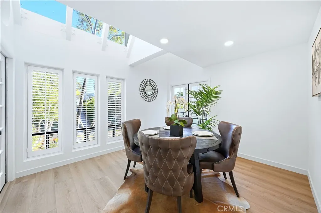 Embrace Brentwoods elevated living in this elegant end unit condo, offering breathtaking treetop and city views from its multiple private balconies. As you step through the front door, dramatic high ceilings crowned by a stunning chandelier greet you, creating a sophisticated ambiance perfect for modern living and entertaining. This freshly remodeled condo has contemporary design, featuring brand new luxury vinyl flooring, freshly painted interiors, and a state-of-the-art chefs kitchen with premium appliances and elegant recessed lighting. This residence is bathed in natural light, which accentuates its open floor plan and refined design. On the main level, there are two expansive primary suites each with a private balcony and ensuite bathroom. A wooden spiral staircase leads up to a spacious loft that overlooks the entire living space. The open-concept layout is flooded with natural light, offering unparalleled privacy with no neighbor to the right side, showcased by views of lush greenery that frame a serene, nature-inspired retreat. Additional features include in unit laundry and two side-by-side parking spaces all within a controlled access, gated community. A prime location only steps from San Vicentes vibrant dining, boutique shopping, and West LAs elite amenities.