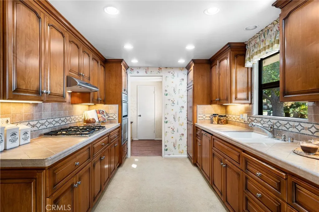 Welcome to Elizabeth Park, built by the Iconic Valentine family in the early 60's, this tract has always been one of the best neighborhoods in Orange! Extra large lot features mature shade trees, a feeling of being away from the big city. The entry has leaded glass door and sidelights that lead to a single story ranch home with a great floorplan. The formal living room has a large sliding door out to the pool and park-like rear yard. There is a mason-built rounded brick fireplace, floor to ceiling with a built-in bookcase/display area. The family room features a large picture window that overlooks the patio and pool. There is an eating area off the kitchen for those stay-at-home meals. The kitchen has the vintage tile that looks like it was installed yesterday with stainless Kitchenaid appliances including a built-in gas range, microwave, electric convection oven and a built-in refrigerator/freezer. This flooplan is classic and functional. There is direct access to an attached 2-car garage with laundry and a utility sink. Behind the garage is a double-door entry to an office and a 3/4 bath, separate from the main house. 3 bedrooms have plantation shutters and custom-built closets with mirrored wardrobe doors. The primary bedroom features an en suite bath with shower, dual sinks and closets. The main bath has a tub/shower accented in tile and glass. The rear yard is a vacation spot all year long. A beautiful pool and spa accented in brick, a custom-built brick BBQ island, seating areas, a covered patio and a 2nd rear yard that is home to the pool equipment, playhouse and gar