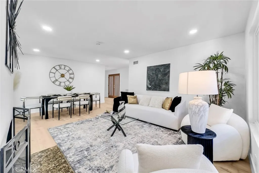Welcome to this exceptional four-bedroom, two-bathroom home nestled in the coveted Villa Park community, where sophistication meets suburban serenity. Upon approach, elegant double walnut doors herald your arrival into 1,746 square feet of thoughtfully designed living space adorned with lustrous light oak luxury vinyl flooring that flows seamlessly throughout. The heart of this residence showcases a gourmet kitchen that would make even the most discerning chef swoon, featuring gleaming granite countertops, premium stainless steel appliances, and an abundance of storage solutions for the culinary enthusiast. The inviting living room, anchored by a charming fireplace, provides the perfect backdrop for both intimate gatherings and grand entertaining. The primary bedroom serves as a tranquil retreat, complete with mirrored wardrobe doors and an attached private bathroom. Three additional bedrooms, each equipped with mirrored wardrobe doors, offer flexibility for family living, home offices, or guest accommodations. Throughout the home, recessed lighting and brushed gold hardware elevate the aesthetic with contemporary elegance. Practical amenities abound, including an indoor laundry room, attached two-car garage, efficient tankless water heater, and central air and heating systems for year-round comfort. The location proves equally impressive, with proximity to highly-regarded Villa Park Schools and convenient access to Ralphs Fresh Fare for daily necessities. Villa Park High School sits nearby, while Grijalva Park offers recreational opportunities. The Orange train station pro