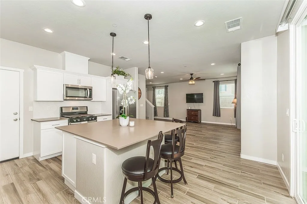 $20,000 Price Reduction! Now look at this price!!! Seller is motivated!! This very desirable Wathen Castano home with 3 bedrooms and 2.5 bathrooms and Owned Solar (12 panels and no TrueUp) is in move-in ready condition. This outstanding, very functional floor plan has an open feeling with lovely decorative touches throughout starting with the tiled woodlike flooring. The great room with high ceilings is adjacent to the spacious kitchen with an oversize center island for loads of seating and entertaining. A designer package was chosen for the well coordinated color choices including decorative backsplash, stainless steel appliances, pantry, can lighting and easy access to the rear yard and garage. There is a convenient half bath downstairs and carpeted stairs to the upstairs with a very spacious primary bedroom and bathroom. In addition there are two bedrooms with another hall bathroom for everyone's comfort and relaxation. The laundry room is also nearby. This home has lots of storage, and all the space is used very well. The easy care rear landscaping has been tastefully completed and ready for you to enjoy with the extra concrete and its own firepit. This quiet neighborhood is within walking distance to a community park and walking paths nearby to explore. Being 2 miles west of 99 gives you easy freeway access and conveniently located to the Water Park and shopping.