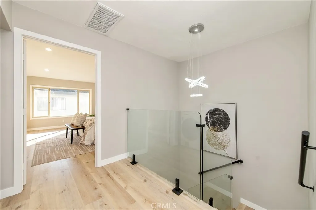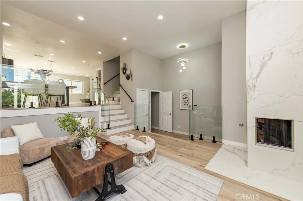 Located in the highly desirable Turtle Rock Meadows community, this beautifully renovated home offers modern elegance, thoughtful design, and exceptional functionality. The property has been fully renovated with city permits and professionally inspected, providing peace of mind for todays discerning buyer. The open-concept floor plan features 3 bedrooms and 2.5 bathrooms, soaring high ceilings, and abundant natural light. The spacious primary suite is a true retreat, highlighted by a luxurious spa-style bathroom with stunning designer showers and modern LED mirrors. The home showcases high-end finishes throughout, including a designer open kitchen equipped with a gas stove, a striking modern fireplace, and sleek glass stair railings. Additional upgrades include new recessed LED lighting, brand-new luxury vinyl hardwood flooring, and brand-new dual-panel windows and sliding doors. A rare and highly desirable feature in comparable floor plans is the city-permitted upstairs laundry closet, designed to accommodate a stackable washer and dryer, eliminating the inconvenience of garage-based laundry commonly found in similar models. The formal living and dining rooms provide excellent spaces for entertaining. Brand-new appliances, including a refrigerator and gas range. Residents enjoy access to two community pools, with Turtle Rock Park nearby featuring tennis courts, a nature center, and scenic walking trails at Bommer Canyon. The home is situated within a top-rated school district and is conveniently close to University High School, Turtle Rock Elementary, Bonita Canyon Element