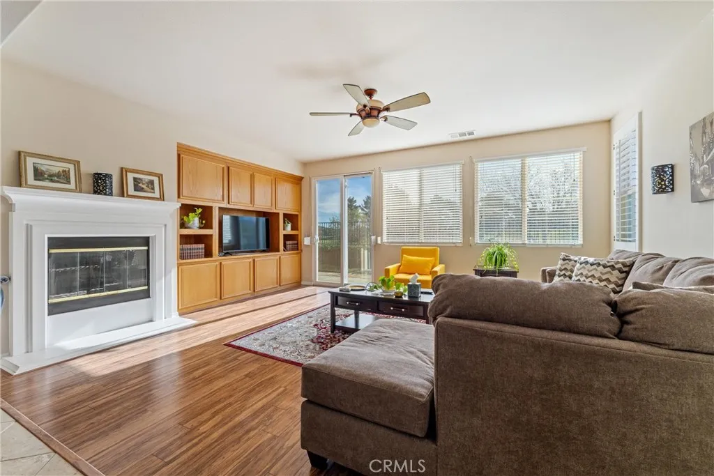 Experience luxury golf course living at its finest in Rancho Vista. This stunning former model home is perfectly situated in the prestigious Palmdale West community. This expansive single-story residence features three oversized bedrooms, three bathrooms, and a versatile bonus room that can easily be converted into a fourth or even a fifth bedroom. From the elegant travertine-tiled foyer to the designer wood ceilings in the formal dining room, every detail exudes sophistication. The home includes rich wood flooring and three separate fireplaces for unparalleled ambiance. The gourmet chefs kitchen is equipped with a massive central island, a butler's pantry, and double ovens. The primary suite serves as a true sanctuary, featuring its own fireplace, a retreat area with custom built-ins, and a spa-like bath with a soaking tub and walk-in shower. Key upgrades include a newer AC condenser, gutters, and custom aluminum exterior security shutters for golf ball protection. A three-car tandem garage provides ample space for vehicles or a workshop. Seller will consider all offers, including those that include concessions.