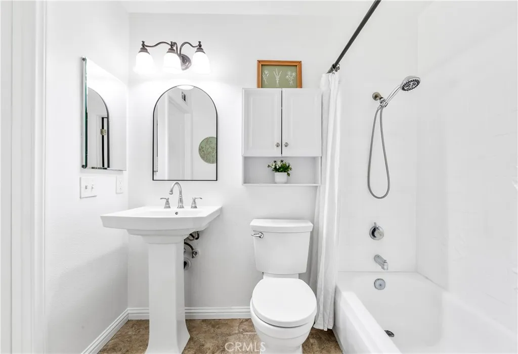 Perched on a greenbelt within the highly desired community of Cypress Village, this charming 2 bedroom, 2 bathroom, end unit, offers two extra large primary ensuite bedrooms and endless upgrades. This S&S built townhome has been meticulously upgraded with thoughtful renovations and modern improvements. This residence blends timeless appeal with contemporary comfort, energy efficiency, and low-maintenance living. Discover the open and inviting living room featuring 20x20 porcelain tile flooring throughout the entire home. Freshly painted walls, smooth ceilings, updated 2-panel Roman interior doors. The spacious living room is bathed in natural light flowing in from the dual pane white vinyl French door and dual sidelites. The energy efficient windows are complemented by premium Woodlore plantation shutters that include lifetime limited warranty. The open concept living room is complete with a gas fireplace as the focal point. The kitchen is on trend in a black and white color scheme and includes a recently installed dishwasher and above range microwave. Energy-efficient and quiet living is ensured by a Daikin high-efficiency HVAC system with newly installed ductwork and a Honeywell WiFi touchscreen thermostat and paired with NEW TAP fire-resistant insulation in the attic. Both bathrooms have been beautifully remodeled with the installation of new porcelain pedestal sinks, Delta shower faucets and heads, frameless beveled medicine cabinets, new light fixtures, and shower tub reglaze. The spaciousness in the bedrooms are complemented with a $20,000 investment in custom Califor
