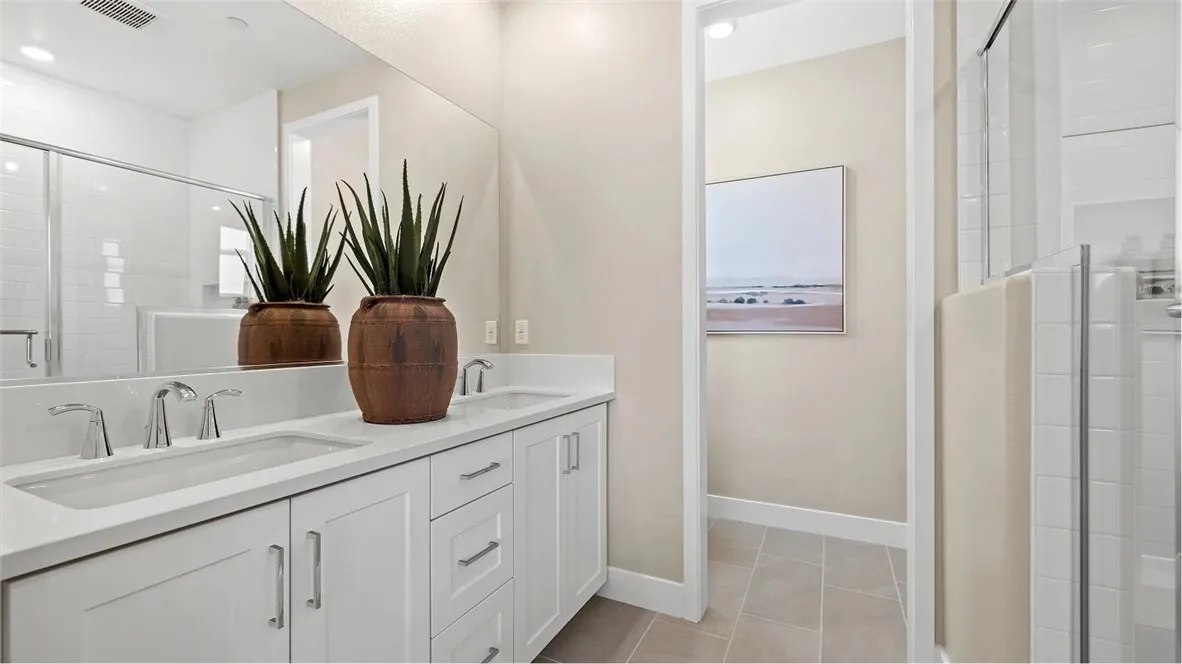 At Great Park's newest home collection RHEA, the plan 1 home features a flexible and well-designed home built for modern living. The 1st floor features a 2-bay garage and a bedroom perfect for guests, or a private home office. The second floor showcases an entertainers kitchen with an large kitchen island, plentiful cabinets for storage, and a spacious balcony. The third floor offers a spacious primary with an extra long private balcony. There is an equally spacious secondary bedroom with its on en-suite bathroom. Between the secondary bedroom and the primary suite is a conveniently located laundry closet. This home is just a short walk to a stunning 13-acre park with beautiful amenities including 2 pools, pickle ball, handball, basketball, tot-lot and more. The home is in a desirable street-facing location, offering easy guest parking in front.