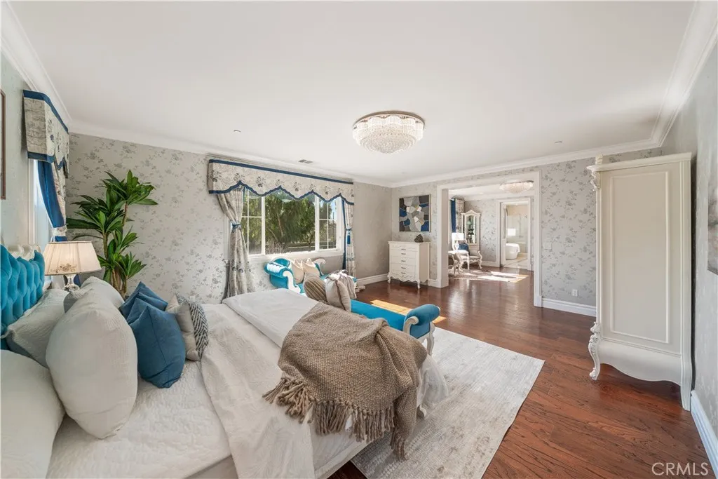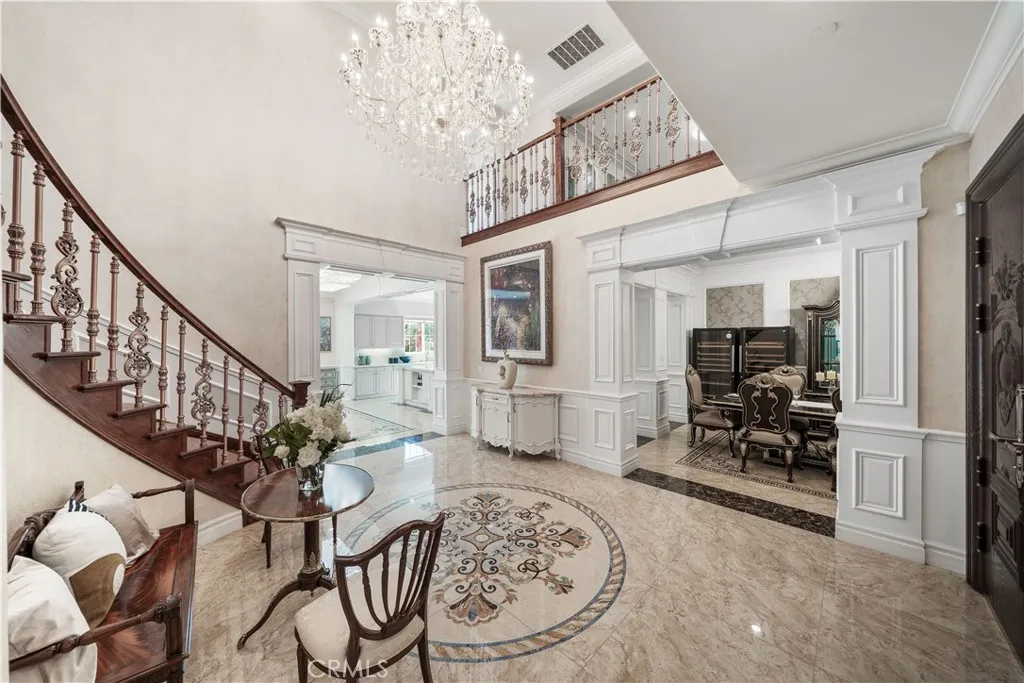 This is a truly rare, custom-crafted luxury home with high-spec upgrades far beyond builder standards. In materials, design, and execution, it stands out as a benchmark for the entire neighborhood. Enter through imported double iron doors to soaring ceilings, a sweeping staircase with custom iron railings, and crystal chandeliers, all sourced internationally. The main level features dual kitchens: a spacious main kitchen and an upgraded High-heat kitchen, perfect for controlling cooking aromas. Beyond the fully permitted covered courtyard and California room, you gain valuable extra living space. On the first floor, enjoy a refined Asian-inspired study and a private suite with its own entrance and bath. Upstairs, youll find a serene Japanese tatami-style guest room and a spacious loft. Both the fully paid solar panels and whole-house water softener ensure long-term savings. With top-tier upgrades and a one-of-a-kind flow from entrance to loft, this home is both a functional masterpiece and a unique sanctuary.