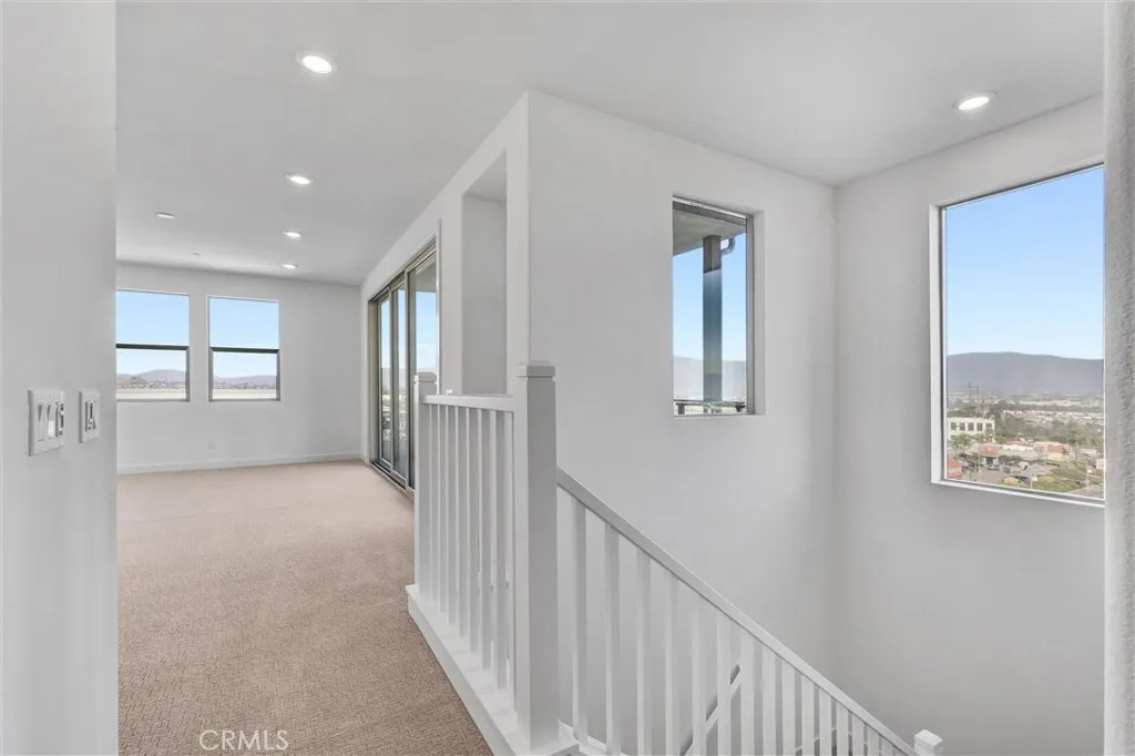 New House on Extra Large Lot in Guarded Luxury Community Metro Height. Paid off Solar, World Class Amenities. Discover modern comfort and luxury living at 2058 Hollyleaf Ter, a stunning corner unit in the highly sought-after gated community of Metro Heights. This spacious 5-bedroom, 4-bath, 3200sqf corner unit home offers an open floor-plan filled with natural sunlight, enhanced by solar panels for energy efficiency and a high-quality water softener system. Step inside to find a bright and inviting space perfect for both relaxing and entertaining. The home's stylish kitchen, ample living areas, and luxury finishes are designed with your comfort in mind. The second floor includes a loft and three bedrooms, while the top level boasts a spacious bonus room and outdoor terrace and a big fourth bedroom. This unit has no neighbors behind and enjoys a unique spacious backyard which is one of the biggest lot of this floor plan that offer plenty of back yard living space. The spacious 2-car garage offers plenty of storage.Enjoy access to resort style community amenities, including a clubhouse, pools and spas, a fitness center, BBQ areas, and beautifully landscaped pocket parks. The location is ideal for commuters and families alike, with easy access to the 60 freeway and just minutes from downtown LA! Nearby shopping essentials like Costco, Home Depot, and more are less than five minutes away.