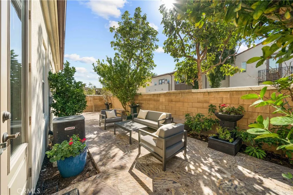 Rarely available Woodbury Treo Plan 2X featuring a master suite on each level and an exceptional 3-bedroom ensuite configuration where every room boasts its own private bathroom. This open and spacious layout feels like a single-family residence and is situated on one of the community's largest elevated corner lots at the end of a quiet cul-de-sac. Meticulously upgraded throughout, the home showcases beautiful stone floors on the main level and high-quality wood flooring throughout the entire second leveloffering a modern, carpet-free environment. The gourmet kitchen features premium stainless steel appliances and extensive stonework, overlooking a living area anchored by a grand fireplace. Custom built-ins in the closets and garage, luxurious multi-layered crown molding, designer paint, and upgraded chandeliers highlight the interior's sophistication. The oversized, professionally landscaped yard is a true sanctuary with flagstone flooring, water features, seat walls, and a wide variety of established fruit trees. Enjoy resort-style living with walking access to 14 parks, 7 pools, tennis courts, and the Jeffrey Open Space Trails, while being minutes from world-class shopping and top-rated Woodbury Elementary and Jeffrey Trail Middle School.