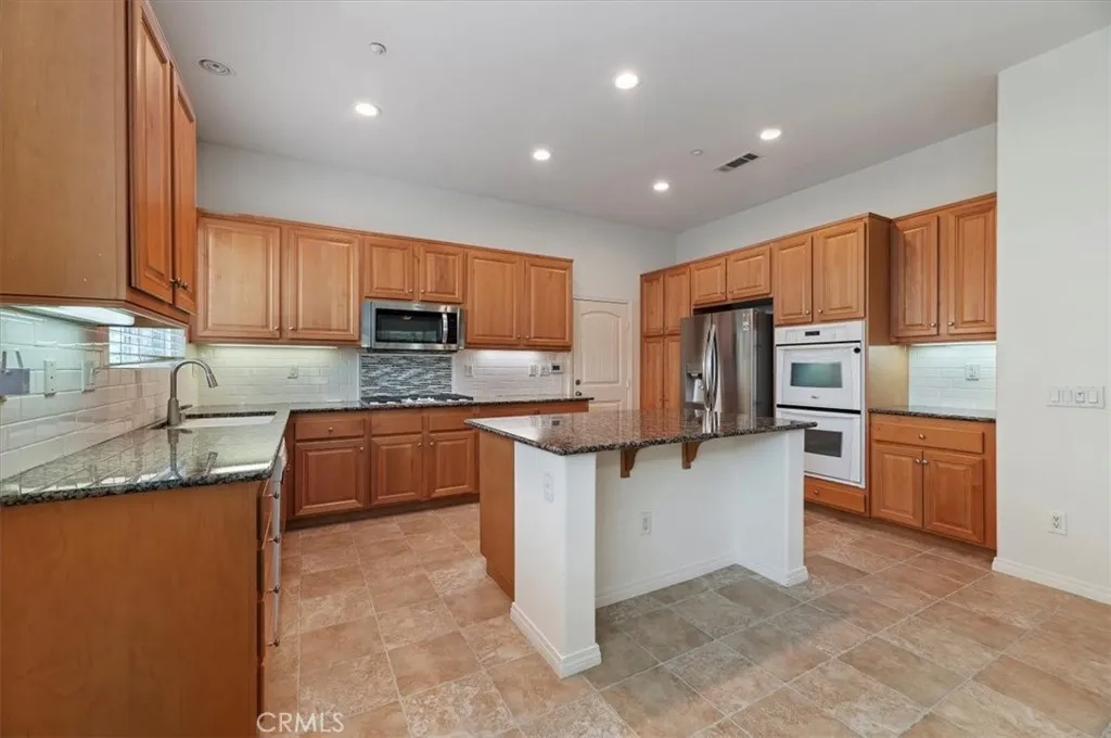 Beautiful single-story home located in the highly desirable Mission Ranch community. A charming brick front entrance and lush landscaping create wonderful curb appeal. Offering 4 bedrooms, 2.5 bathrooms, and over 2,600 sq. ft. of living space, this home features a formal entry with soaring 10-ft ceilings and an open-concept floor plan. Enjoy formal living and dining rooms, perfect for entertaining. The gourmet kitchen is equipped with granite countertops, double convection ovens, built-in microwave, and a center island, with convenient direct access to the attached 3-car garage. The kitchen opens to a spacious family room highlighted by a cozy gas fireplace. The primary suite is a true retreat, complete with a generous walk-in closet with organizer and an ensuite bath featuring dual sinks, a jetted soaking tub, and separate shower. Three additional guest bedrooms offer comfortable space for family or visitors. The interior has been freshly painted and professionally cleaned, and the laundry room is conveniently located indoors. Step outside to a private backyard designed for entertaining, featuring mature landscaping and an Alumawood covered patio. Enjoy picturesque views of the surrounding snow-capped mountains. Ideally located near top-rated schools, shopping, and easy freeway access, this home combines comfort, style, and convenience.