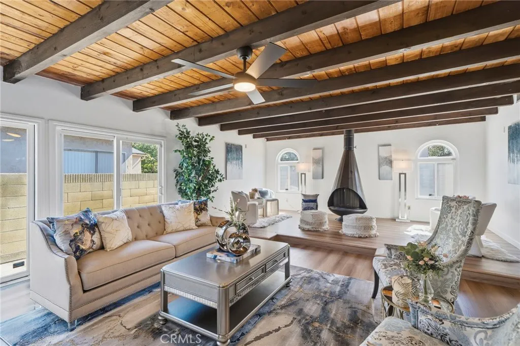 Cerritos: Newly Upgraded Single Level Home - Ideally situated on a quiet interior street, this beautifully upgraded 1,569 square foot single-story home offers three bedrooms and two baths. This residence has been extensively upgraded and thoughtfully refreshed throughout. Upon entry, you are welcomed by a formal living room with a cozy fireplace and adjacent dining area, creating an inviting space for both everyday living and entertaining. The homes expanded family room is a standout feature, offering vaulted ceilings and a second fireplace. This generous area creates an open and airy atmosphere. Dual-pane sliding glass doors provide seamless access to the backyard and allow natural light to fill the space. The all-new kitchen showcases brand-new cabinetry, elegant quartz countertops, a new sink and fixtures, and stainless-steel appliances including a refrigerator, microwave, stove, and oven. Both bathrooms have been upgraded with new vanity cabinets and modern fixtures, adding a fresh and contemporary feel.Additional Upgrades: Brand new two-tone interior paint throughout. New custom carpet enhances the bedrooms, while wide-plank luxury vinyl-wood flooring extends throughout the main living areas, providing durability and style. Additional improvements include a brand-new roof over the extended family room and a brand-new 200 amp electrical panel, offering added peace of mind. The spacious backyard provides a wonderful setting for relaxing or entertaining guests. Located within walking distance to highly rated Nixon Elementary School, this home offers not only exceptional u