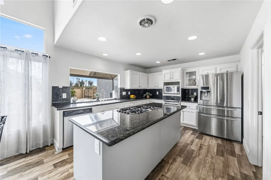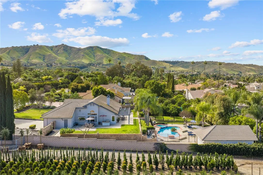 Welcome to a home that truly gives you room to breatheinside and out. Set in a highly desirable area of Riverside and tucked at the end of the street for extra privacy, this spacious single-story property on over half an acre offers spectacular views all around. It also has an open, bright feel with high ceilings, abundant natural light, generous living areas, and an easy flow for everyday life and entertaining. Wood-look tile flooring throughout adds warmth and durability in all the right places. The kitchen is designed for gathering, with plenty of counter space and an island that naturally becomes the hub of the home. The primary suite is a standout, featuring a spa-like bathroom with a soaking tub withing the beautiful shower. Out back is where this property really shines: a sparkling pool, a built-in BBQ area, and a yard that feels like your own private getawayfully enclosed with block wall fencing for peace and privacy. Enjoy the charm (and fresh juice!) from seven mature orange trees, plus tons of usable space for play, gardening, or simply relaxing while taking in the views. Youll also appreciate the updated pool equipment and updated HVAC system. And for anyone who needs parking, storage, or space for hobbies, this one truly delivers: two separate garages that accommodate five cars, including a second garage thats approximately 30 feet deep with a 100-amp panelperfect for a workshop, home gym, toys, or serious projectsplus convenient RV access. A classic tile roof and wide driveway round out the curb appeal and functionality. This is the kind of property thats hard