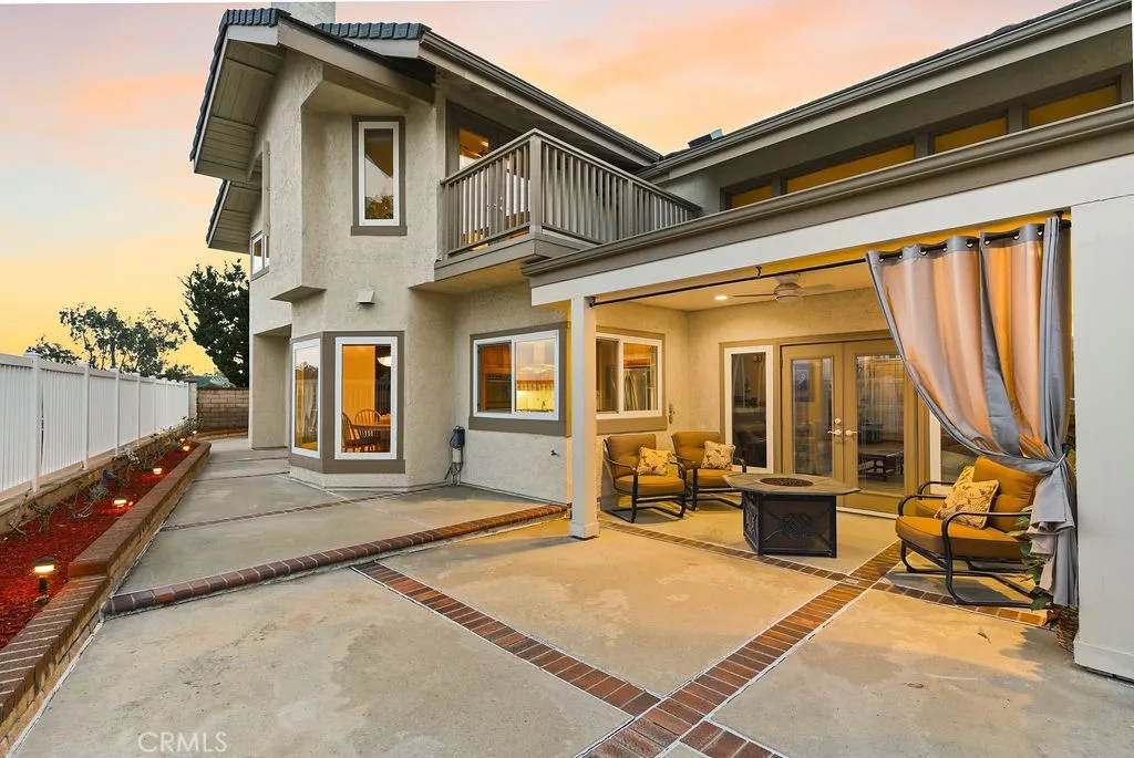 Welcome to the beautiful High Horse Trails! Set on an elevated lot with sweeping hillside and city light views, this spacious 4-bedroom, 3.5-bath home offers 3,604 square feet of bright, open living space in one of Oranges most established and sought-after neighborhoods. From the gated front courtyard to the soaring ceilings inside, the home makes an immediate impression with its natural light and expansive open foyer. The kitchen features custom wood cabinetry, granite countertops, stainless steel appliances, double ovens, a gas range, and a large center island that anchors the space. A sunny breakfast nook captures panoramic views, while the formal living and dining areas provide elegant entertaining space. The separate family room with wood flooring and a fireplace opens seamlessly to the backyard, creating an easy indoor-outdoor flow. A downstairs bedroom with its own 3/4 bath is ideal for guests, multigenerational living, or a private office. Upstairs, the primary suite offers vaulted ceilings, a fireplace, a private balcony, and an en suite bath. The huge bonus room provides flexible space for a media room, playroom, or additional bedrooms. The backyard is designed for relaxed outdoor living and low maintenance, featuring a covered patio with a ceiling fan and a spacious entertaining area that takes full advantage of the sunset views. A three-car garage and wide driveway complete the package. Located in a quiet, stable neighborhood with convenient access to shopping, dining, Peters Canyon, and nearby trails.