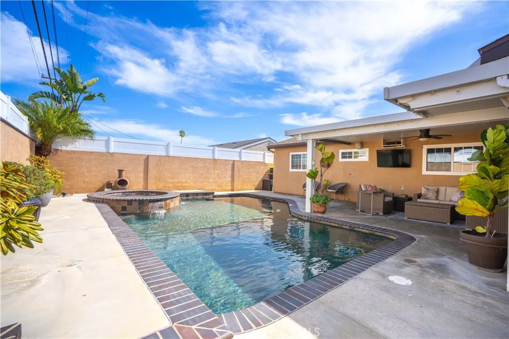 This is the property you have been waiting for! Welcome to this turnkey, fully remodeled, 4-bedroom / 2-bath home located in the heart of Cypress, CA. With a fantastic open floor plan and a fully remodeled kitchen, comfortable living and easy entertaining are within reach. The gourmet kitchen boasts a spacious island and opens to a large versatile living space that can be used for dining, seating, or functional work space. High quality craftmanship abounds throughout the home. Upgrades include: new windows throughout, a permitted room addition with fireplace, new central air, new quiet cool fan system, and more. Most importantly, this home has the perfect flow for modern living while offering tasteful finishes and optimal comfort. The property has amazing curb appeal with artificial grass, new fascia boards, recently replaced roof, added cement walkway and steps, wider driveway for RV access, and beautiful landscaping. The backyard is perfect for entertaining with a pool and jacuzzi with chlorine salt generator and high energy efficient pump, covered patio with BBQ/bar/refrigerator, and new vinyl gates. The property is located just a few yards away from the award-winning Landell Elementary School and a few blocks away from the nationally recognized Oxford Academy, both known for their outstanding academic programs. Veterans Park is just a short stroll away, offering open green space, playgrounds, and sports fields for everyone to enjoy. This home offers the best of Cypress livingmodern upgrades, excellent schools, and a friendly neighborhood communityall in one amazing loca