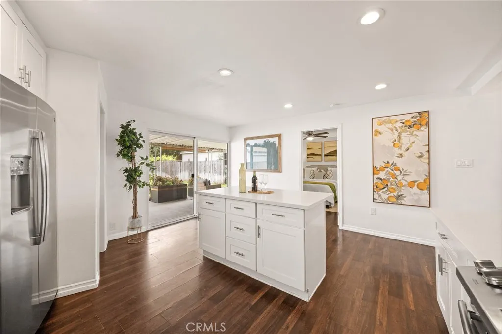 Location, location, location! This beautifully updated 3-bedroom, 2-bathroom home sits on a spacious 7,000plus sq ft lot. The spacious open-concept living, dining, and kitchen area creates a bright and inviting space filled with natural light, designed for comfortable living and entertaining. The upgraded kitchen showcases quartz countertops, subway tile backsplash, white cabinetry, stainless-steel appliances, a center island, and a convenient breakfast bar that opens seamlessly to the dining and living areas. Both bathrooms have been tastefully renovated, including one with a stylish oversized shower and dual-door glass enclosure. Additional upgrades include a large ductless A/C in the living room, recessed lighting, ceiling fans, dual-pane windows, and water heater. Step outside to enjoy the expanded covered patioperfect for entertainingand a landscaped backyard with automatic sprinklers. The property also features a detached 2-car garage with extended storage/workshop space, offering excellent ADU conversion potential (buyer to verify). Ideally located on a quiet cul-de-sac near the Duarte Bike Trail and Historic Route 66, this move-in ready home combines charm, functionality, and future possibilities.