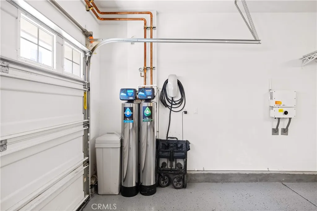 Dont miss this move-in-ready home! Welcome to this beautifully maintained residence located in the highly sought-after gated Prado community in Eastvale. Built in 2019, this upgraded home features brand-new vinyl flooring and a bright open-concept layout filled with natural light. The spacious kitchen offers granite countertops, stainless steel appliances, and a large center island, creating the perfect space for cooking and entertaining. The home includes 4 bedrooms and 3.5 bathrooms, including a convenient downstairs bedroom suite ideal for guests or multigenerational living. Upstairs, the spacious primary suite features a large walk-in closet and a well-appointed bathroom with dual vanities, a soaking tub, and a separate walk-in shower. A bonus sitting area provides flexible space that can be used as a home office, gym, nursery, or media room. Additional highlights include solar panels, a Tesla charging station, a whole-house water softener, and a drinking water filtration system. Residents of this gated community enjoy resort-style amenities including a pool, spa, barbecue area, playground, and scenic walking trails. Conveniently located near the 71 and 60 freeways, with close proximity to schools, shopping, dining, and entertainment. This move-in-ready home offers the perfect blend of comfort, style, and convenience in a prime Eastvale location.