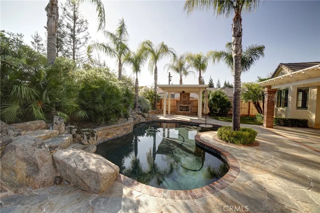 Your Private Oasis Awaits in the Heart of Clovis Unified Welcome to a home where "meticulously maintained" is an understatement. This stunning 4-bedroom, 3-bathroom residence offers the perfect blend of indoor elegance and outdoor luxury. Inside, youll find a chef-ready kitchen featuring granite countertops, sleek tile flooring, and premium stainless steel appliances. The real magic happens when you step outside. Imagine summer evenings on your covered patiocomplete with custom granite flooringoverlooking a sparkling pool. Cool nights are best spent gathered around the custom outdoor fireplace, surrounded by a lush (and low-maintenance!) synthetic lawn. With a 3-car garage, a large storage shed, and a leased solar system, this home isnt just beautiful; its smart.