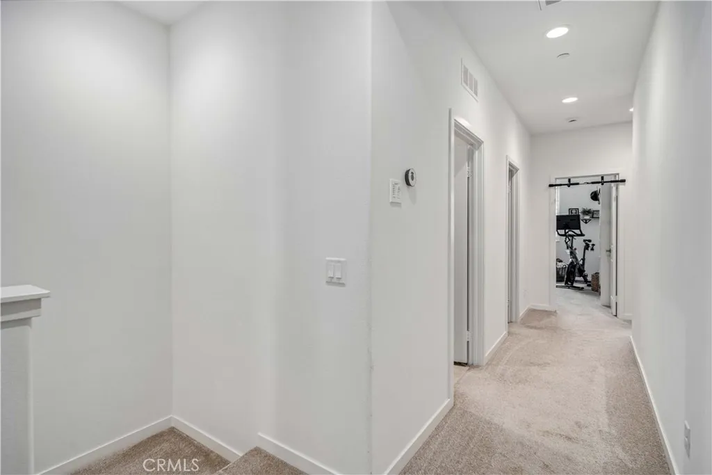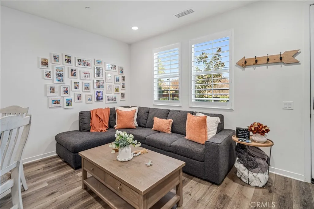 Rare park-front opportunity in Valencias highly desirable West Creek community, offering scenic views and direct access to the park & paseo trail system. Welcome to this beautifully maintained home located in the Paloma neighborhood of West Creek in Valencia. Perfectly positioned fronting a large community park and paseo trail system with scenic mountain views in the distance, this 3-bedroom, 2.5-bath residence offers approximately 1,440 square feet of stylish, move-in ready living. A charming gated front patio and landscaped entry provide a welcoming outdoor space to relax and enjoy the open greenbelt setting just beyond your front door. Inside, the home features a bright open-concept floor plan with luxury vinyl plank flooring downstairs, plantation shutters throughout, recessed lighting, and a whole house fan. The kitchen is both functional and inviting with granite countertops, stainless steel appliances, white cabinetry, and a large center island with bar seating, seamlessly opening to the dining and living areas. Upstairs, the primary suite offers a spacious retreat with park views, a walk-in closet, and an ensuite bathroom featuring dual sinks, glass-enclosed shower. Two additional bedrooms provide flexible space for guests, family, or a home office, along with a convenient upstairs laundry room. Additional highlights include an attached two-car garage and nearby guest parking. Residents enjoy HOA amenities including a community pool, spa, BBQ area, and bathrooms, along with easy access to nearby parks, scenic trails, shopping, and Rio Norte Junior High School. This